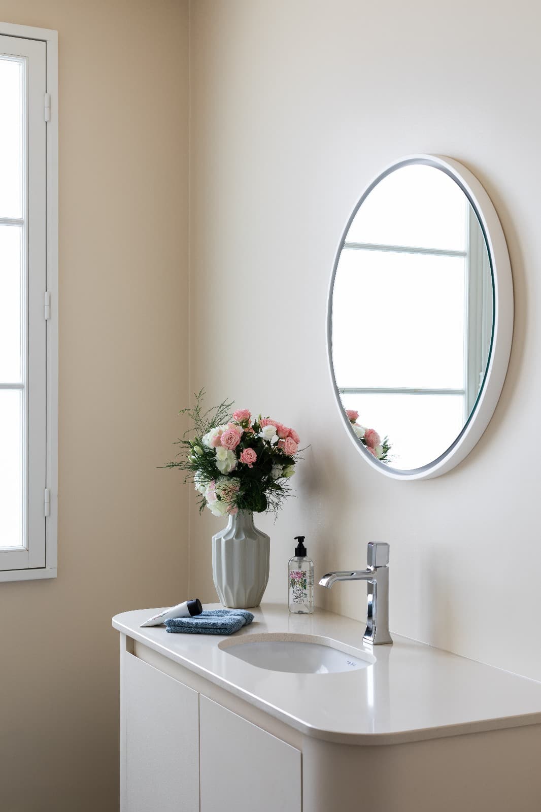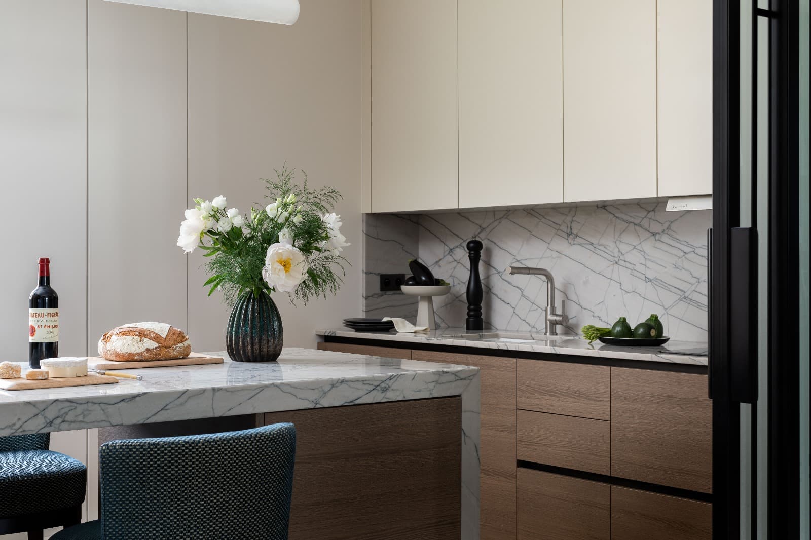 Un projet de rénovation où chaque détail a été pensé pour allier esthétique et fonctionnalité. Nous avons conçu et réalisé plusieurs éléments sur mesure en pierre : un îlot central sculptural pour la cuisine, véritable pièce maîtresse de l’espace, ainsi que des plans vasques élégants pour les salles de bain. Les matériaux ont été soigneusement sélectionnés pour leur noblesse et leur durabilité, avec un soin particulier porté au veinage, aux finitions et à l’harmonie globale. Un projet où le confort du quotidien rencontre l'exigence du design.